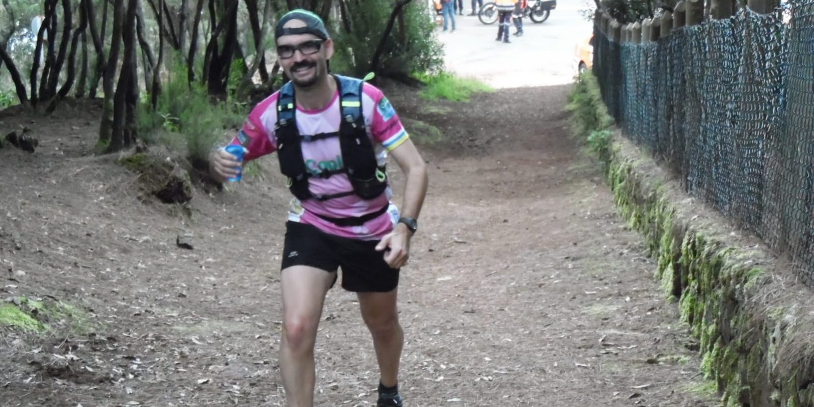 Así que llegó el día: estamos todos en la salida; no faltan consejos de última hora y ánimos entre los pimpollos del equipo. Salgo escopetado y toca subir esos 2 kilómetros interminables. Ya metidos en la pista las cosas van bien; me acuerdo de los consejos del míster y voy alegrito, en los avituallamientos me llevo un puñado de chuches que parece que voy a un cumpleaños y todo va bien hasta la cruz del Dornajito. Ahí queda volver unos kilómetros por la pista hasta la base de la Caldera. Esa parte sabía que iba a ser dura, encima me llevo un sopapo psicológico cuando fui a echarme las sales y se me habían desintegrado (no se si me mojó el recipiente donde las llevaba). Termino la pista y empiezo la subida hasta la Caldera y el Guanche, me encuentro a Noe con el pitufillo sacando fotos, y en el Guanche a Tino, entre los dos me dieron un pequeño empujón (como nos habrá pasado a todos) hasta arriba. Se termina esa subida (no sé quién diseña estos recorridos) y toca bajar y recuperar, pero con miedo de que aparezcan los temidos calambres. Llego hasta la Casa del Agua, no vienen esos calambres. Me digo «bueno parece que no es para tanto no tener sales». Pero llega esa última subida a falta de 4 o 5 kilómetros y pensé que no iban a seguir poniendo cuestas. Me acuerdo de las sales y del azúcar y de todo. Me vengo un poco abajo, pero recuerdo a todo el mundo, a mi familia que dirá «¿para eso fuiste, papi, para quejarte?», del equipo, y me digo: «¡NO! ¡aquí no me voy a parar ahora!». Y termina la subida. Quedan dos kilómetros de bajada y ya no siento ni padezco, pero bajo como si estuviera empezando y llego a meta. «¡Qué alegría! Lo he conseguido!» Busco a los compañeros y a comer paella, dos platos que me cepillé y qué alegría compartirlo, a todos les fue muy bien y encima veo entrar a Salva y Jochen y todos en casa.