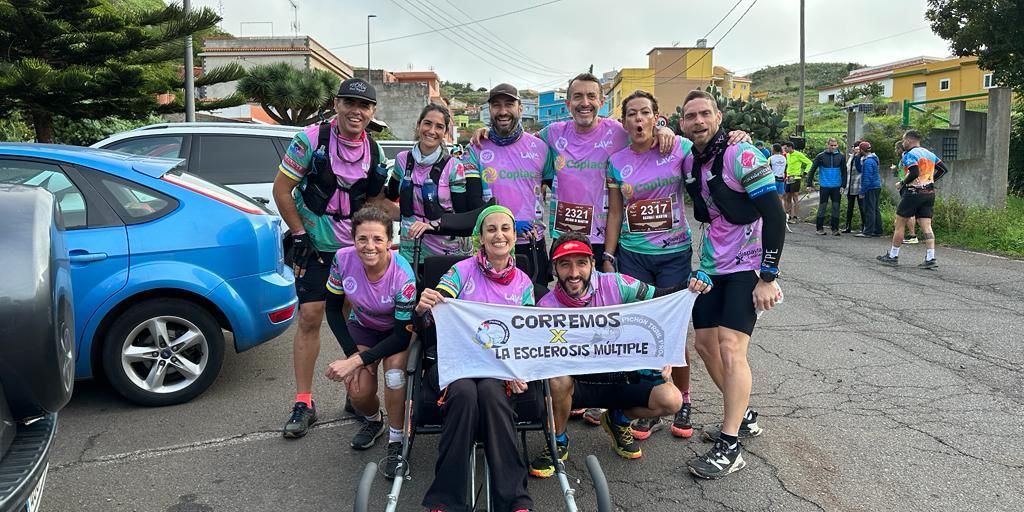 Suena el despertador y me pongo en pie de un salto, pienso ¿Qué desayuno? Y lo primero que me pienso es: pues lo normal solo son 12 km… error. Voy caminando hasta la salida y coincido justo con la llegada de la guagua, de ella de bajan Lolo y Miriam, también esta Guille, ver sus caras me tranquiliza. Luego aparece Elsa con nuestra pasajera Isa, como siempre con mucha ilusión por competir. Ya luego aparece el resto del equipo, ya estamos todos: Elena, Miriam, Lolo, Salva y yo.